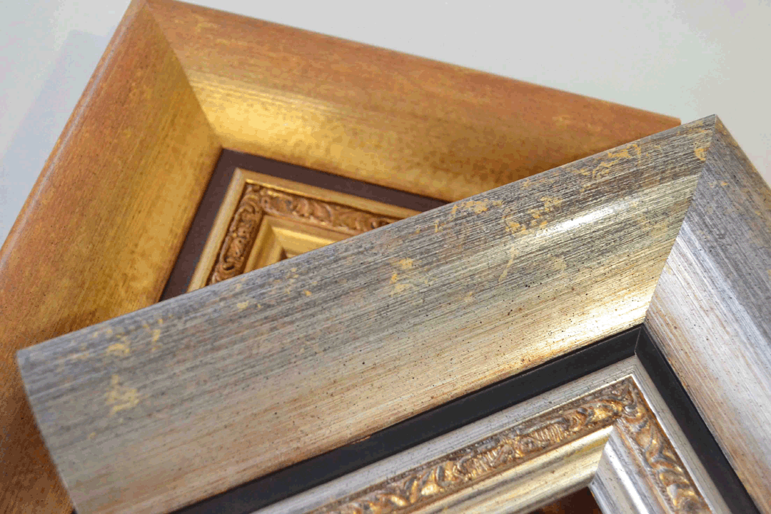 Die Auswahl an Rahmenprofilen, Oberflächen und Designs ist vielfältig. Von klassisch, über Barock, Vintage, simpel, verziert bis hin zur Echtvergoldung gibt es alles. Ein Grossteil der Leisten wird in unserer Produktion in Villmergen gefertigt.